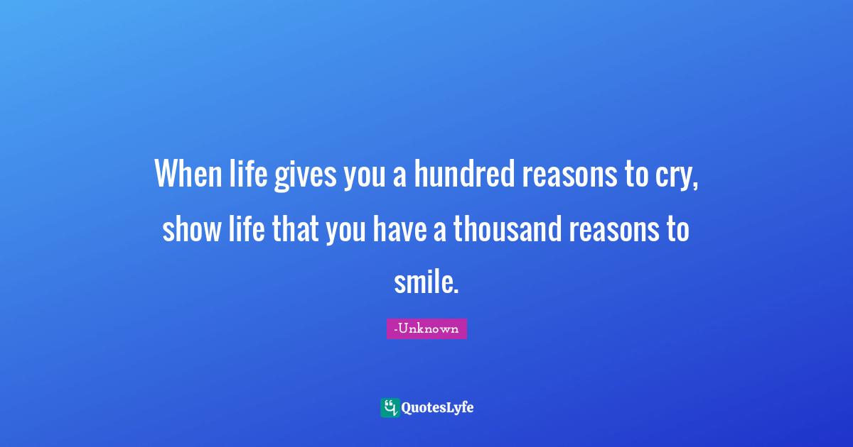 When Life Gives You Thousand Reasons To Cry. => never tell your problems to anyone.20% don't care and the other 80%. Web when life gives you a hundred reasons to break down & cry. We need to appreciate each day not knowing when it could be our last. Web life will give you a hundred reasons to back out, feel as if you have lost everything you ever had, but make sure that you are rising much beyond that! Web stephenie meyer — ‘=> when life gives you a hundred reasons to cry, show life that you have a thousand reasons to smile.=> never tell. Web when life gives you a hundred reasons to cry, show life that you have a thousand reasons to smile. Web “when life gives you a hundred reasons to cry, show life that you have a thousand reasons to smile.” share your thoughts on what this post means to you. Web => when life gives you a hundred reasons to cry, show life that you have a thousand reasons to smile. When life give you lemons make a lemon pie and see how sweet it is! Web when life gives you a hundred reasons to break down and cry, show life that you have a million reasons to smile and laugh. Web neville chamberlain — ‘when life give you hundred reasons to cry, show life thousand reasons to smile.’ August 10, 2021 no comments. You should not just look at the negativities of life, but should as well as focus upon the positive things that have been happening to you. Each day is a joy that we make it good.